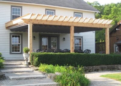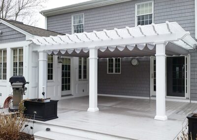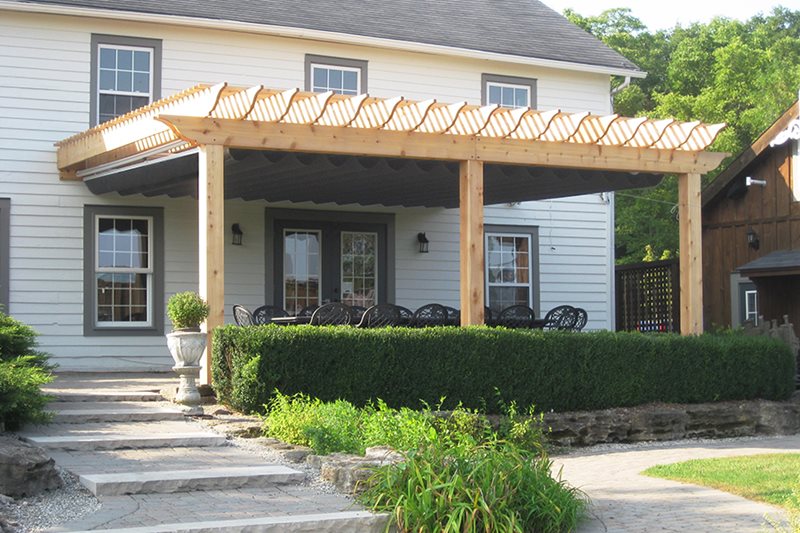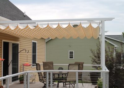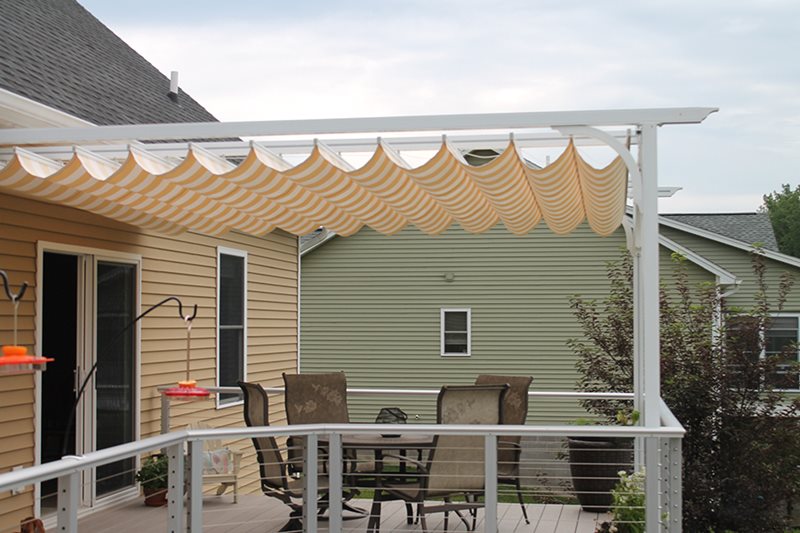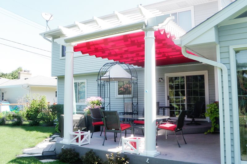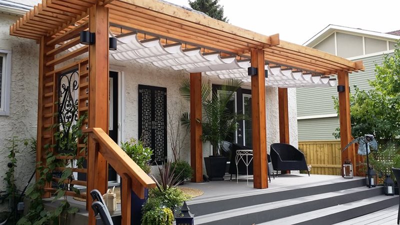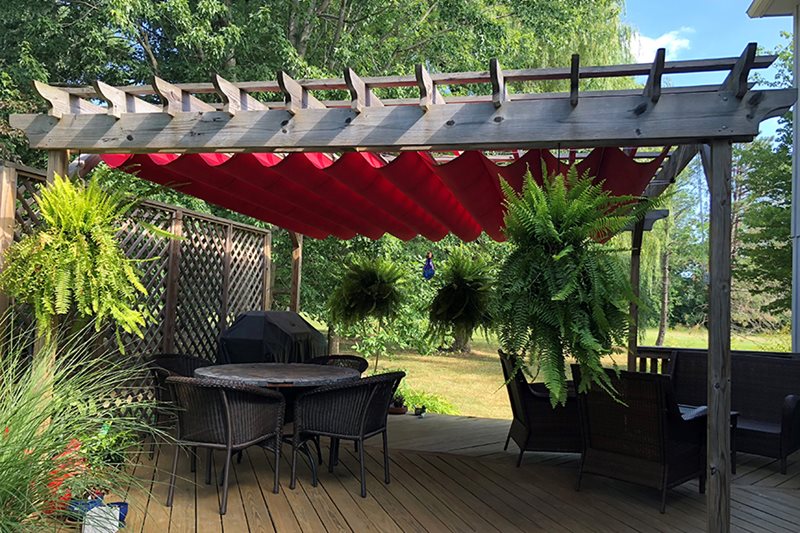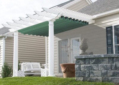 They provide the perfect shade protection for homes and businesses. Canopies can be custom sized and mounted directly to any size pergola to provide shade from the sun.